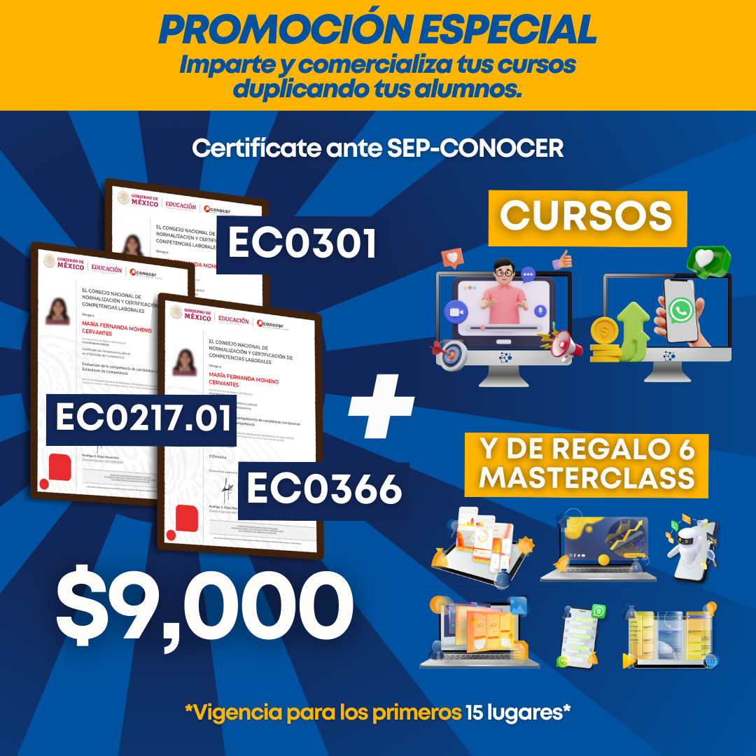 ✅Certificaciones + cursos: $9,000 MXN